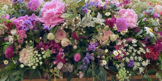 Bespoke personalized floral tributes are created with love and care in a natural, wild country style using beautiful home-grown flowers and foraged materials.