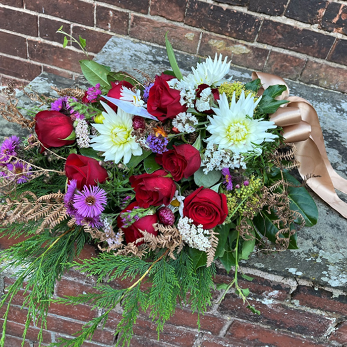 Each bespoke design whether you choose a single or double ended casket spray, wreath, or hand tied sheaf, will be created with the utmost love, respect and care for you and your family.